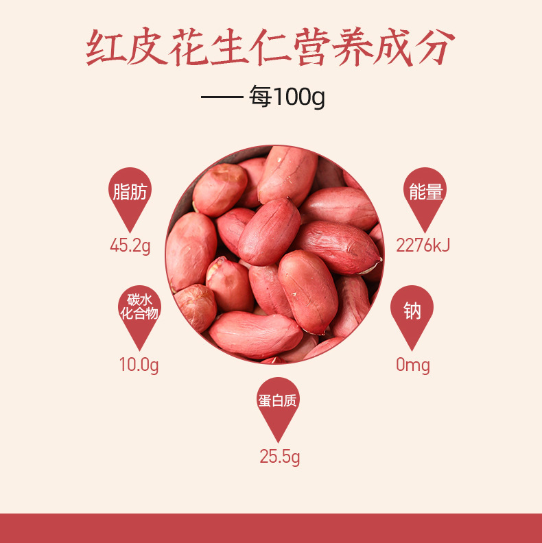 - Variety: red-skinned peanut kernels