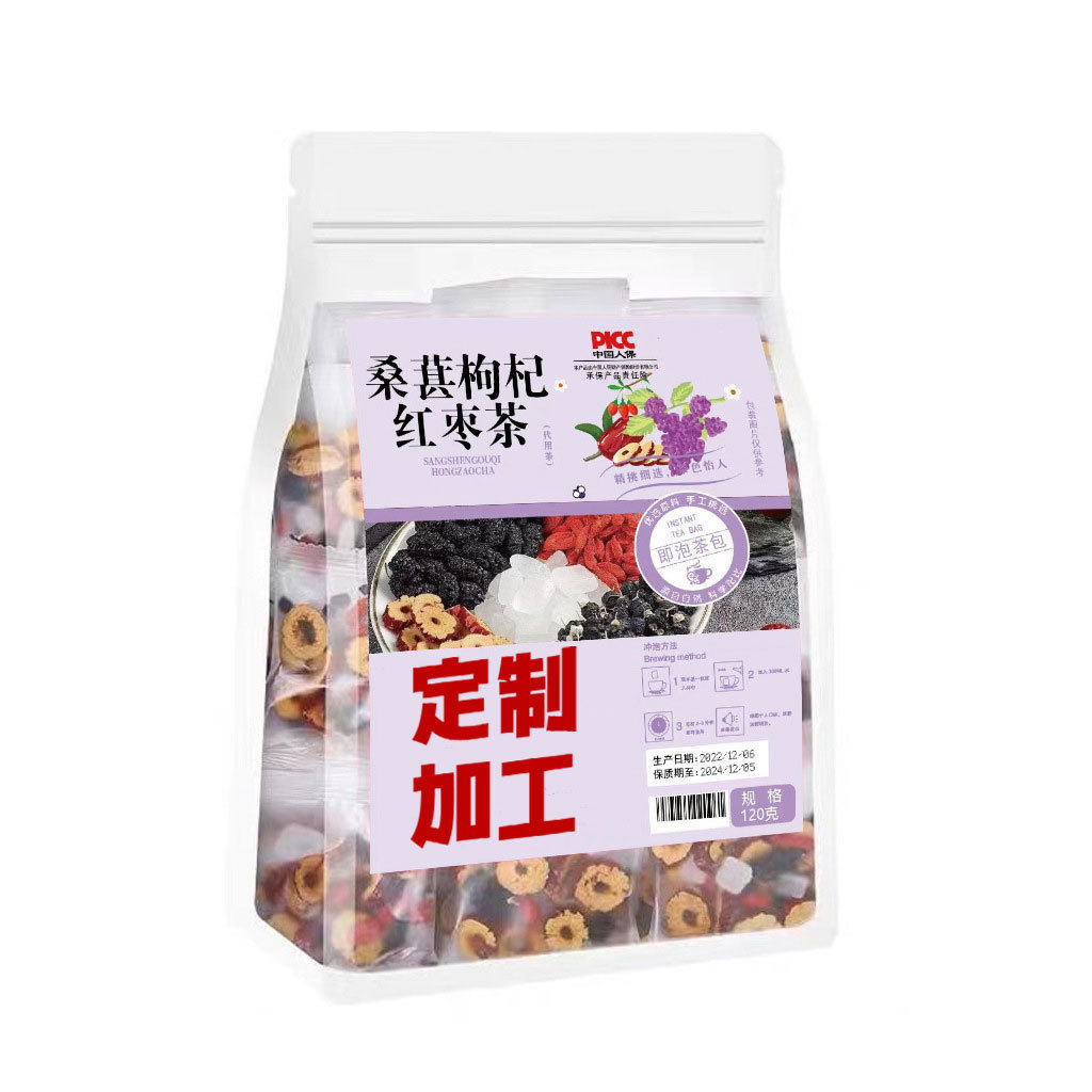 - 原料與配料:桑葚,枸杞,紅棗,冰糖