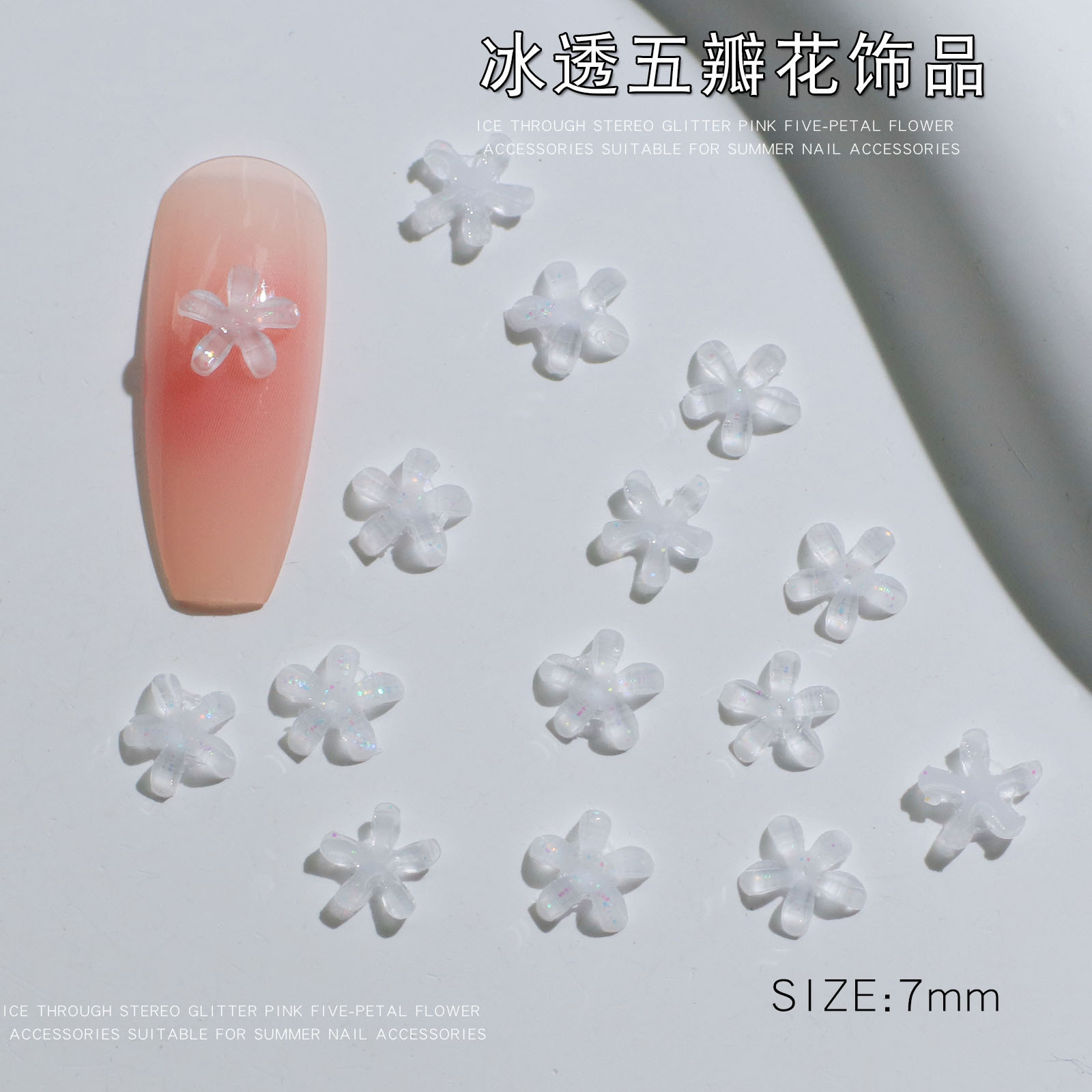 - 規格:冰透五瓣花白色7mm【50顆】