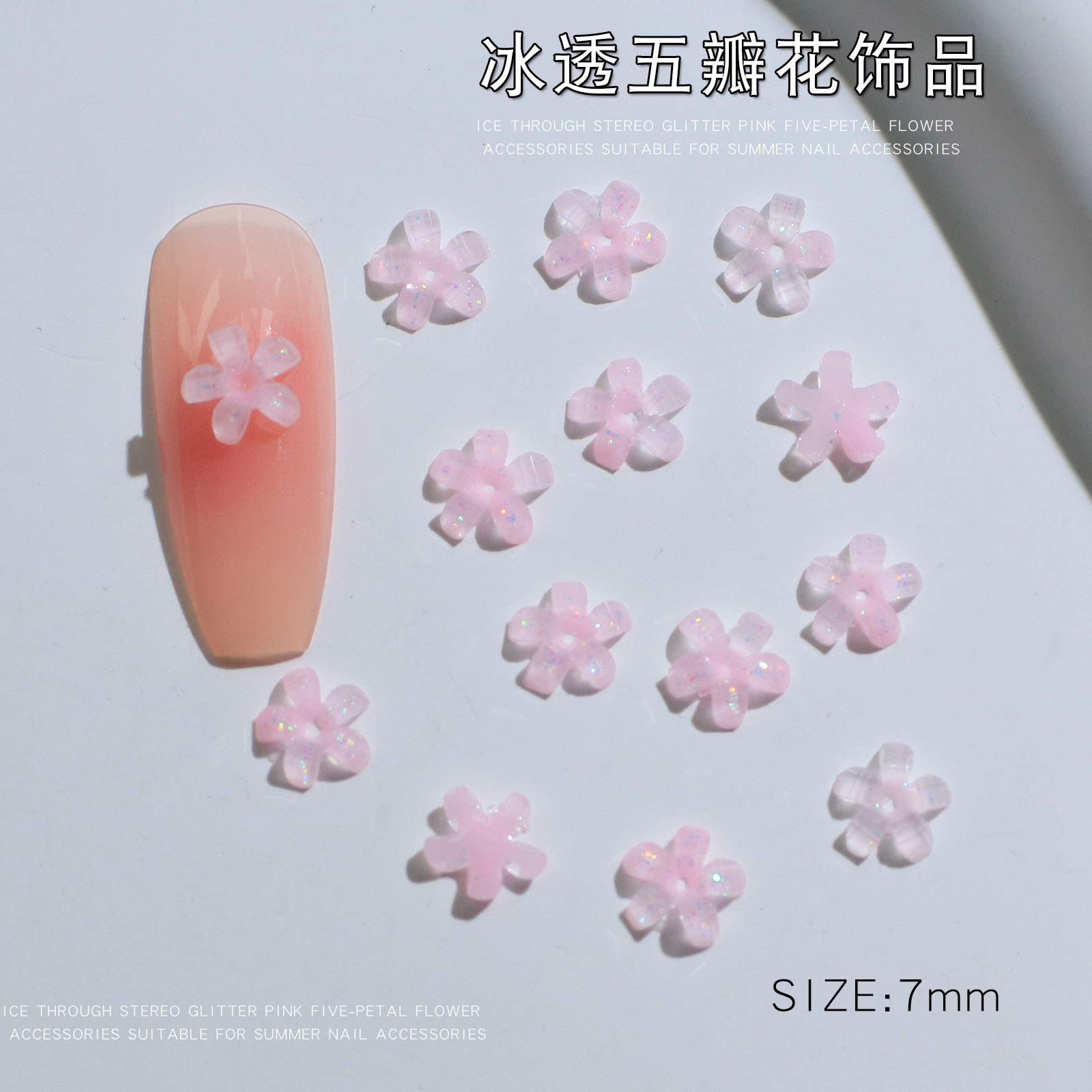 - 規格:冰透五瓣花粉色7mm【50顆】
