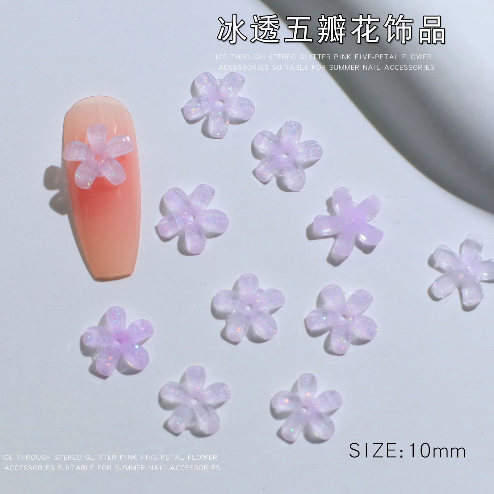 - 規格:冰透五瓣花粉色10mm【50顆】