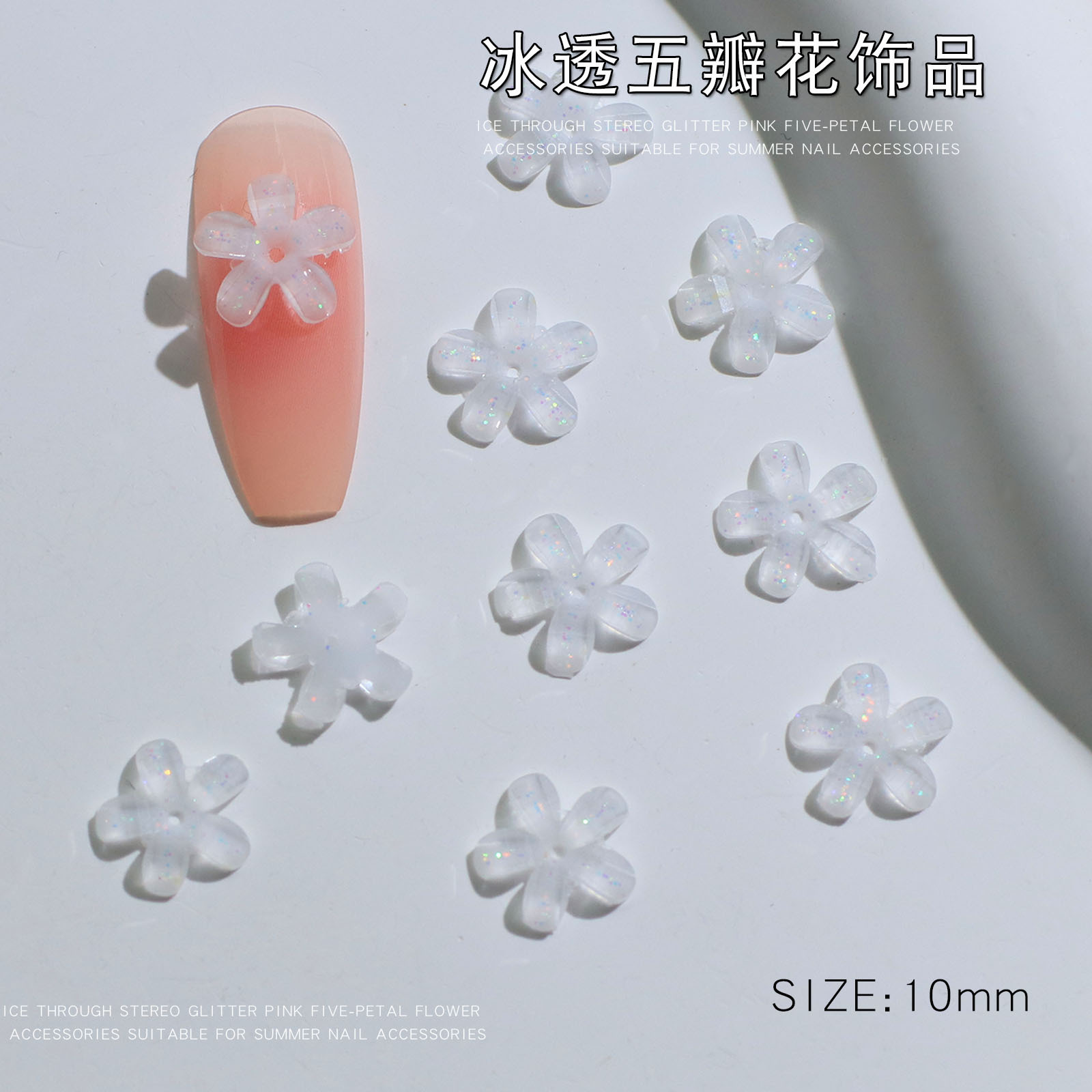 - 規格:冰透五瓣花白色10mm【50顆】