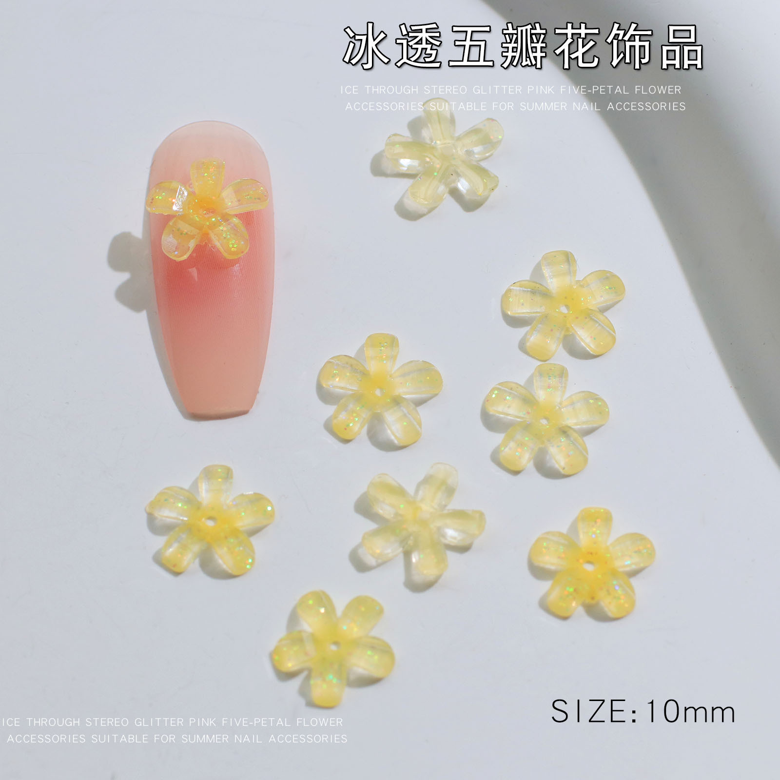 - 規格:冰透五瓣花黃色10mm【50顆】