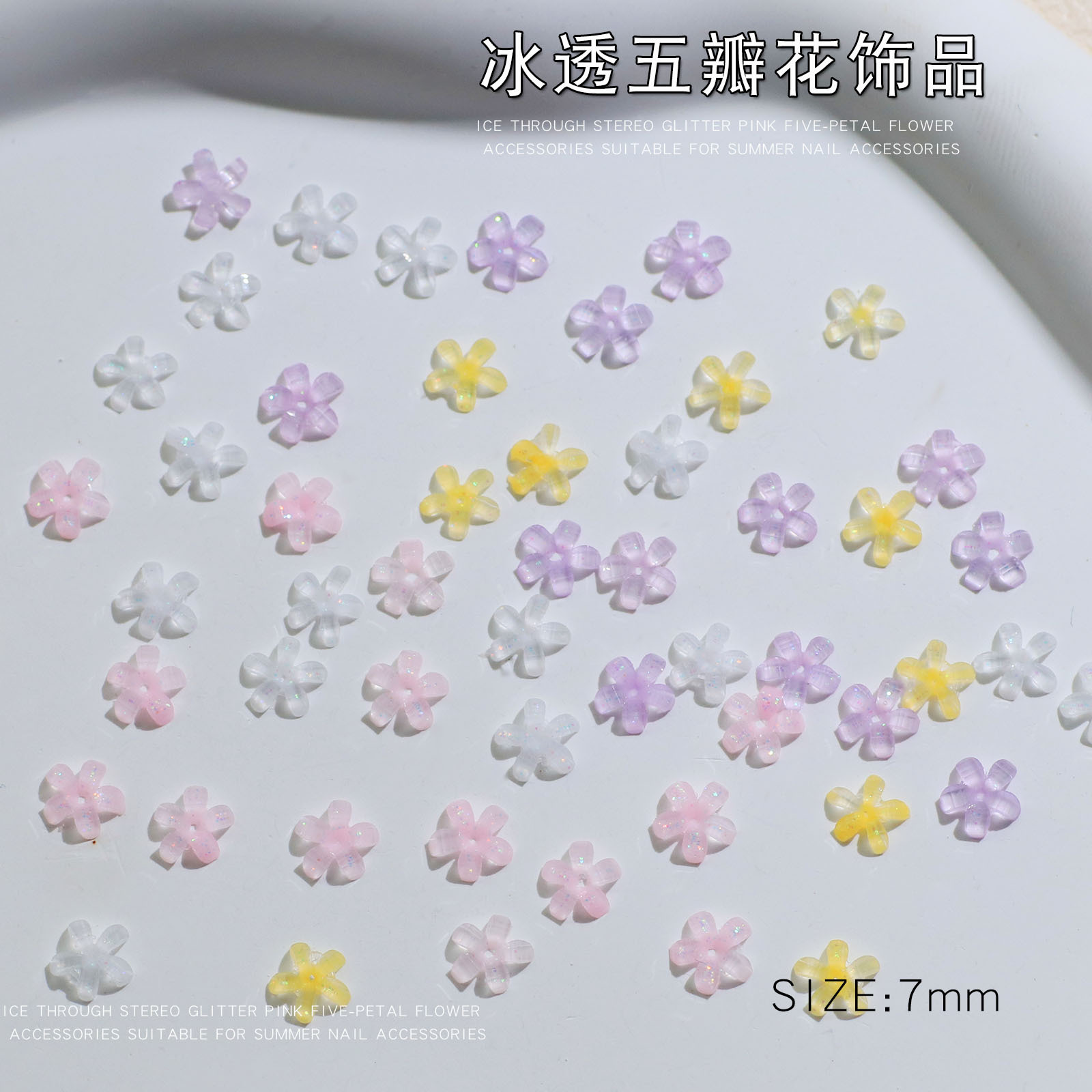 - 規格:冰透五瓣花混色7mm【50顆】