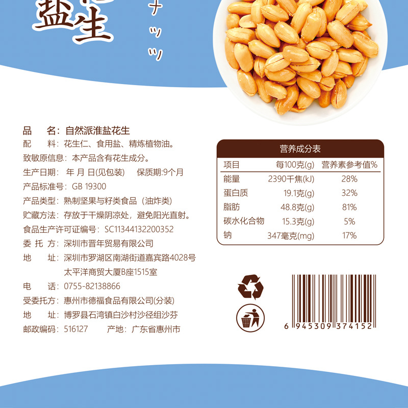 - Packaging specifications: Huaiyan peanuts 100g