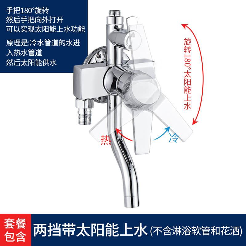 - Specifications: [Water outlet under the belt] Thickened surface-mounted two-stop with solar water supply function