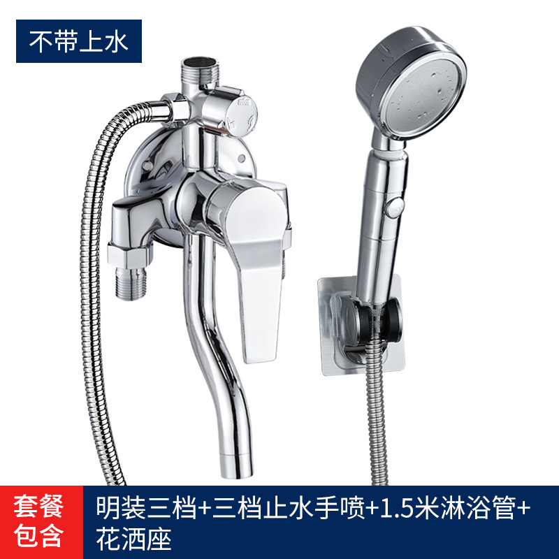 - Specifications: [Water outlet under the belt] Thickened surface-mounted three-speed + booster set