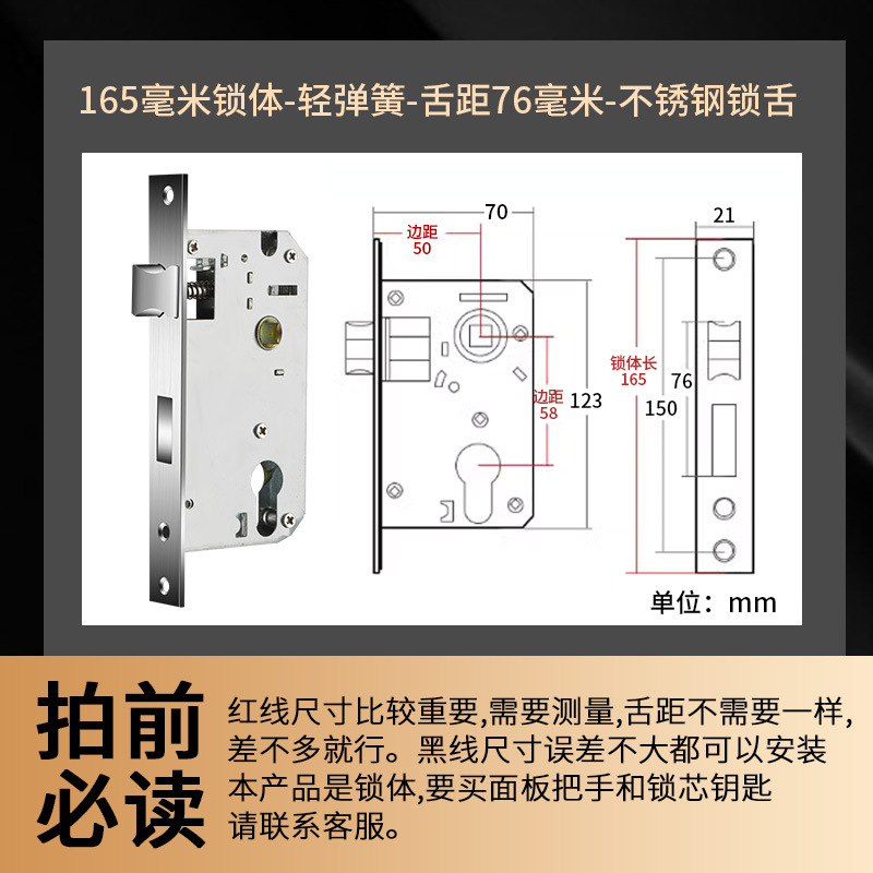 - Specification: 165 lock body [舌距76mm]