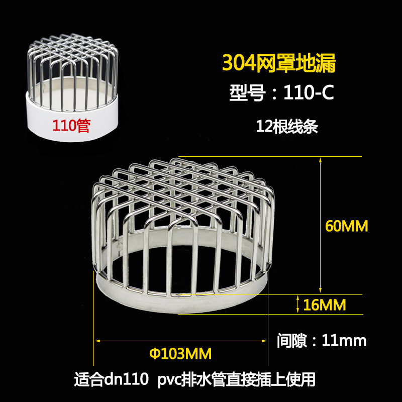 - Specification: 110-B+PVC floor drain