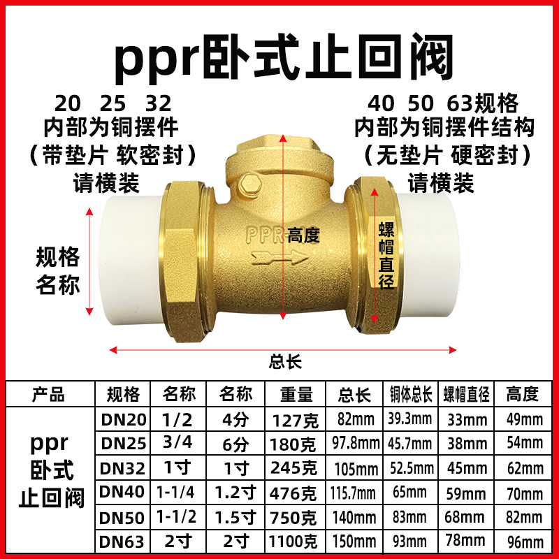 - Specification: 50ppr Horizontal Dual-Live Joint Check Valve