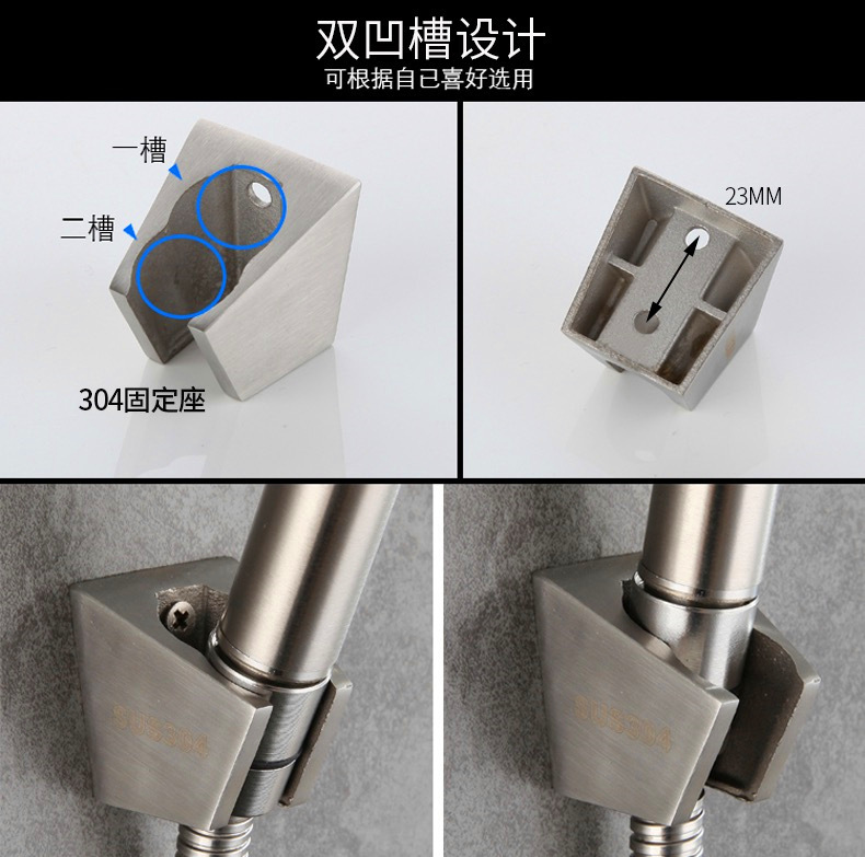 - Specifications: 304 Pearl Double+304 Nozzle+304 Wall Base+304 Hose