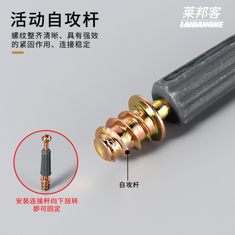 - Specification: 12mm Zinc Alloy Gun Black Wheel + 40 Activity Self-Tapping Rod