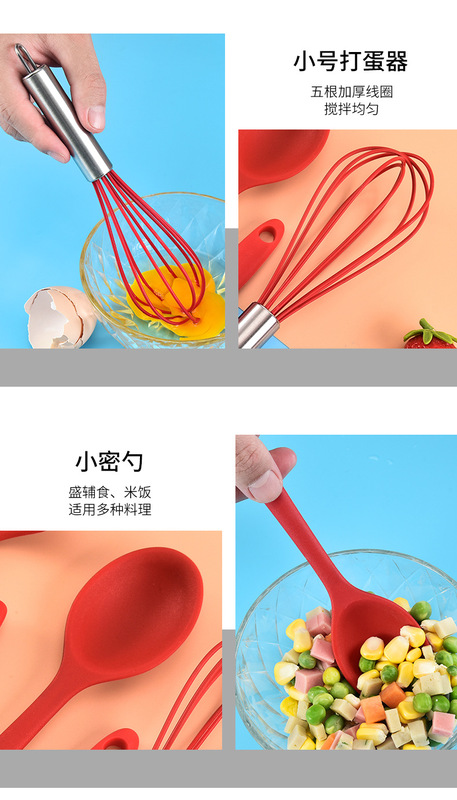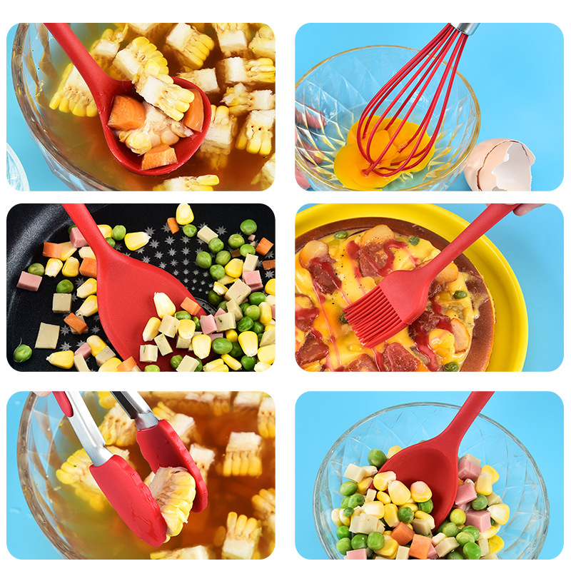 - 套件數量:6件套(湯勺+密鏟+t鏟+油刷+食物夾+打蛋器)散裝