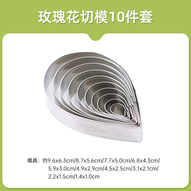 - 規格:水滴型玫瑰花瓣切模10件套