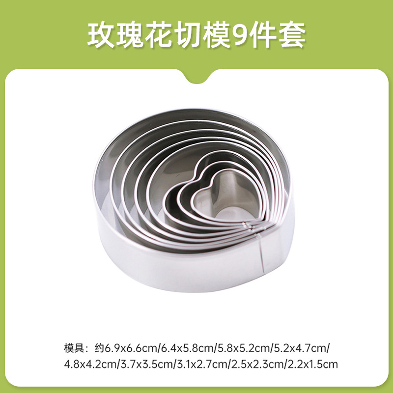 - 規格:玫瑰花瓣切模9件套