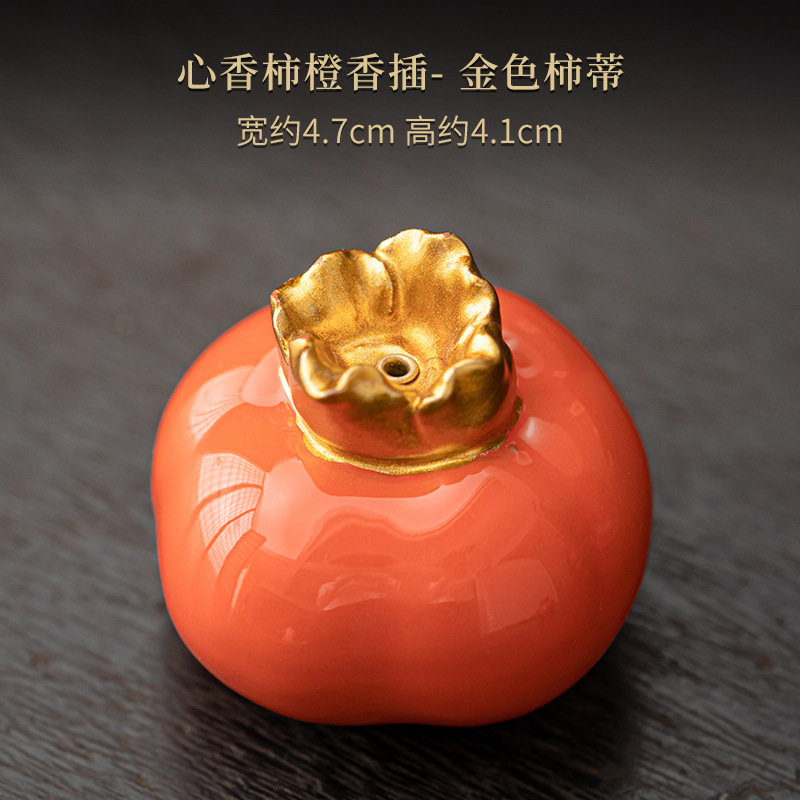 - Specification: Heart Fragrance Persimmon Orange Incense Holder - Gold Persimmon Leaf