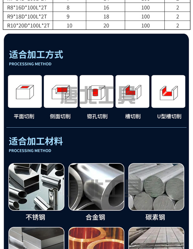 - Processing range: Steel