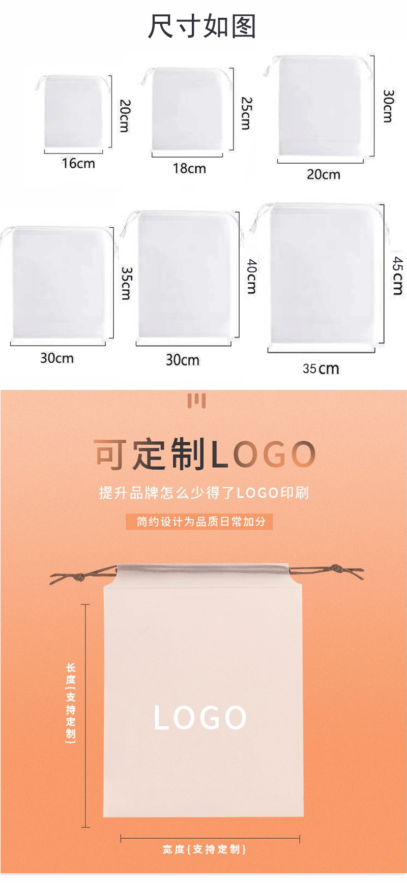 - 規格型號:空白磨砂白繩款;35*45