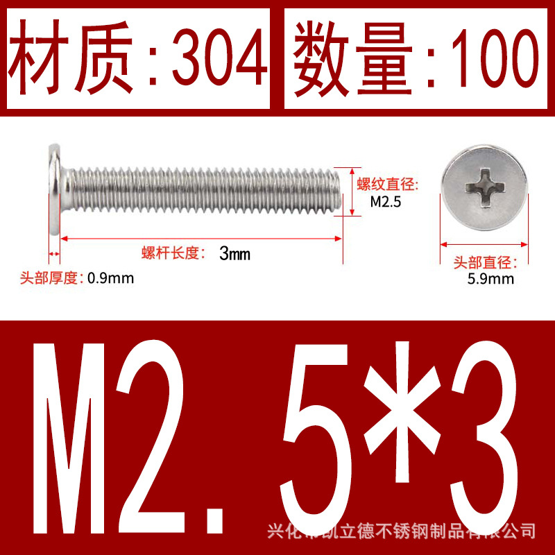- Product specifications: M2.5*30100 pieces