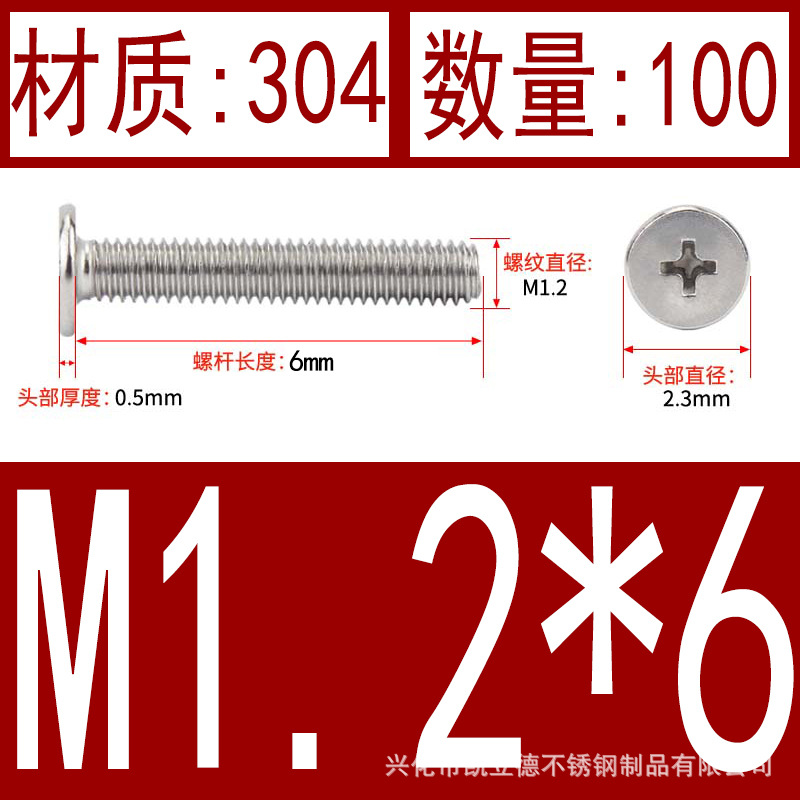 - Product specifications: M1.2*10100 pieces
