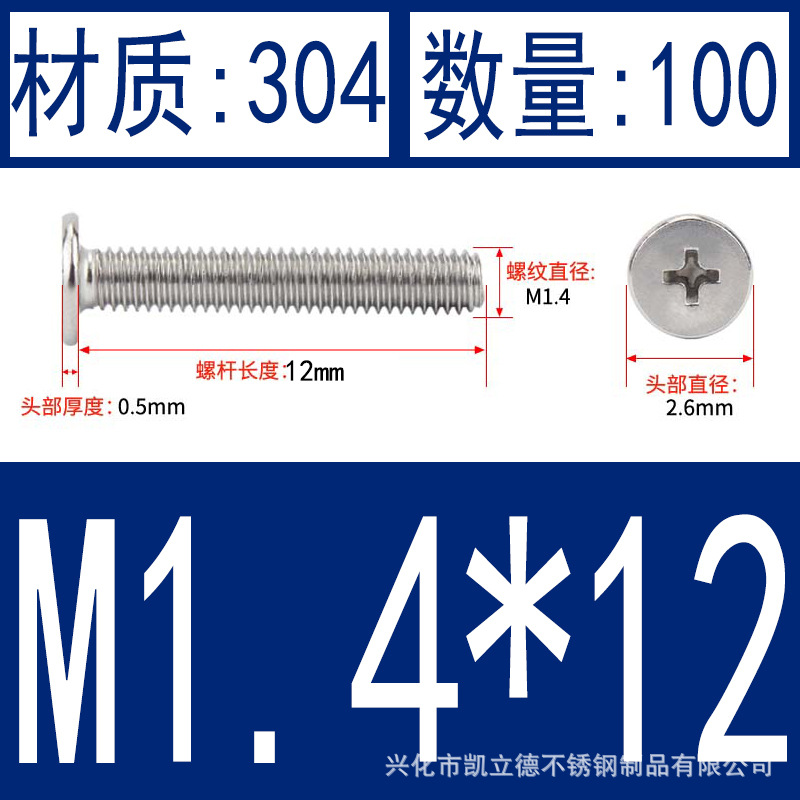 - Product specifications: M1.4*12100 pieces