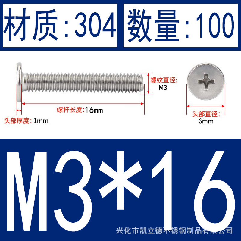 - Product specifications: M3*16100 pcs