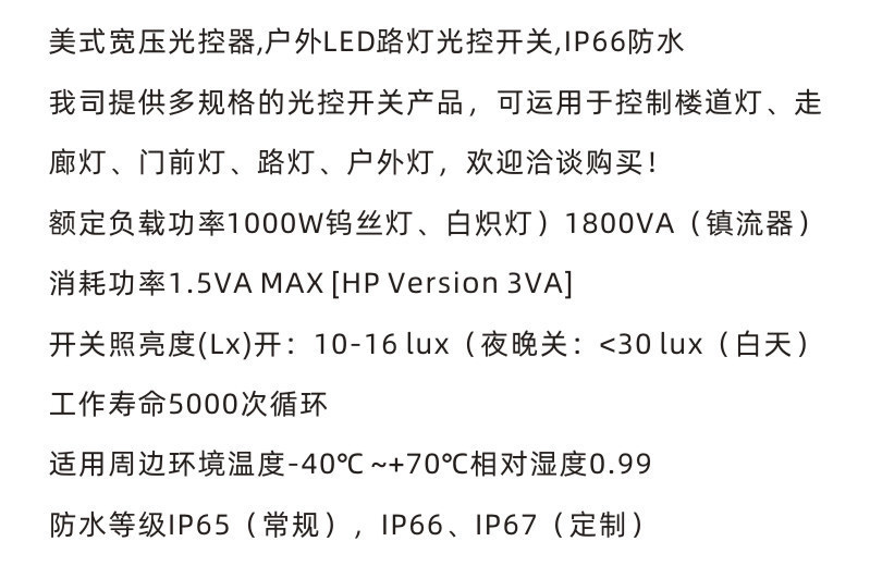 - Sensing principle: light sensing & human body infrared does not light up during the day