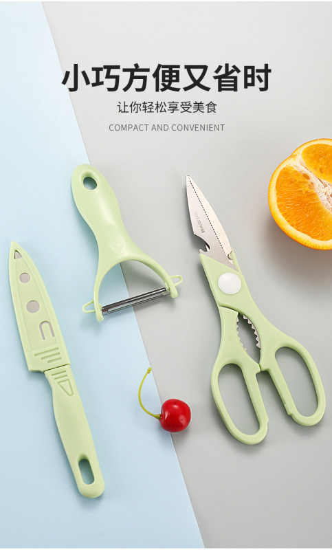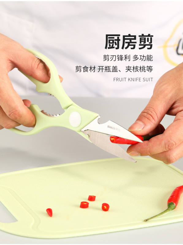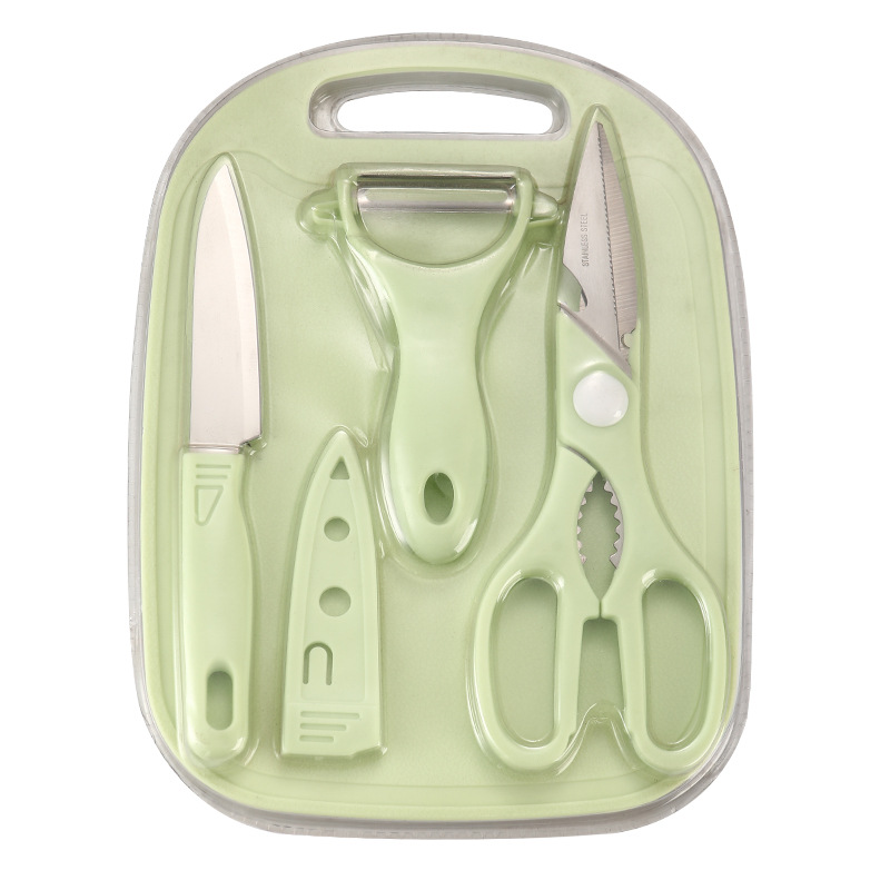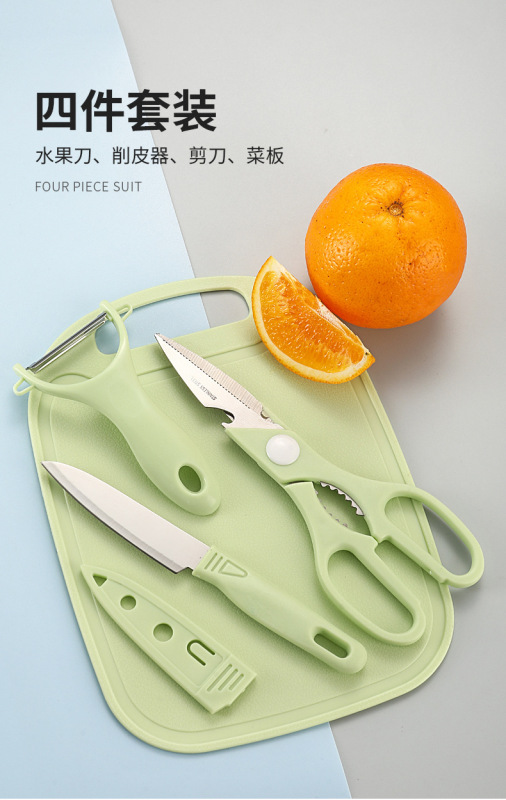 - Specifications: 4-piece set of scissors + fruit knife + paring knife + cutting board