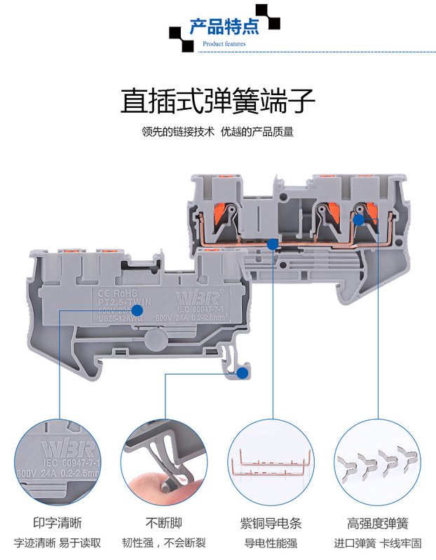 - Model: PT Straight Insert Spring Terminal