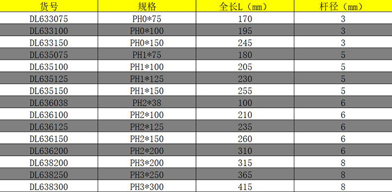 - Specification model: DL636150 (PH2*150mm)