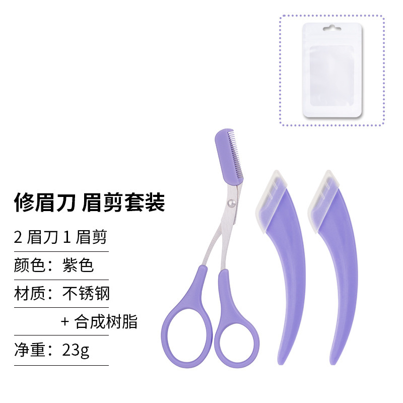 - 規格:修眉刀眉剪套裝【紫色】2眉刀1眉剪