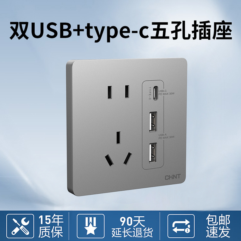 - Model: Dual-USB + Type-C Five-Hole Socket