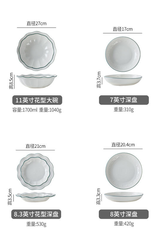 - 產品類別:碗、碟、盤套裝