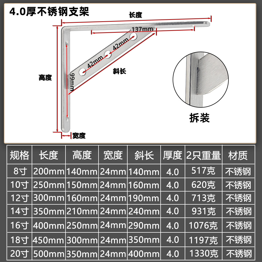 - Specification: 4.0 stainless steel fixed bracket disassembly