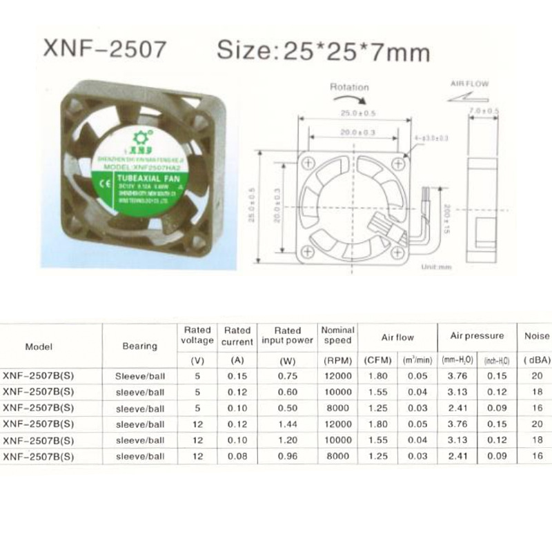 - Product Specifications: XNF-12025B(S)12v