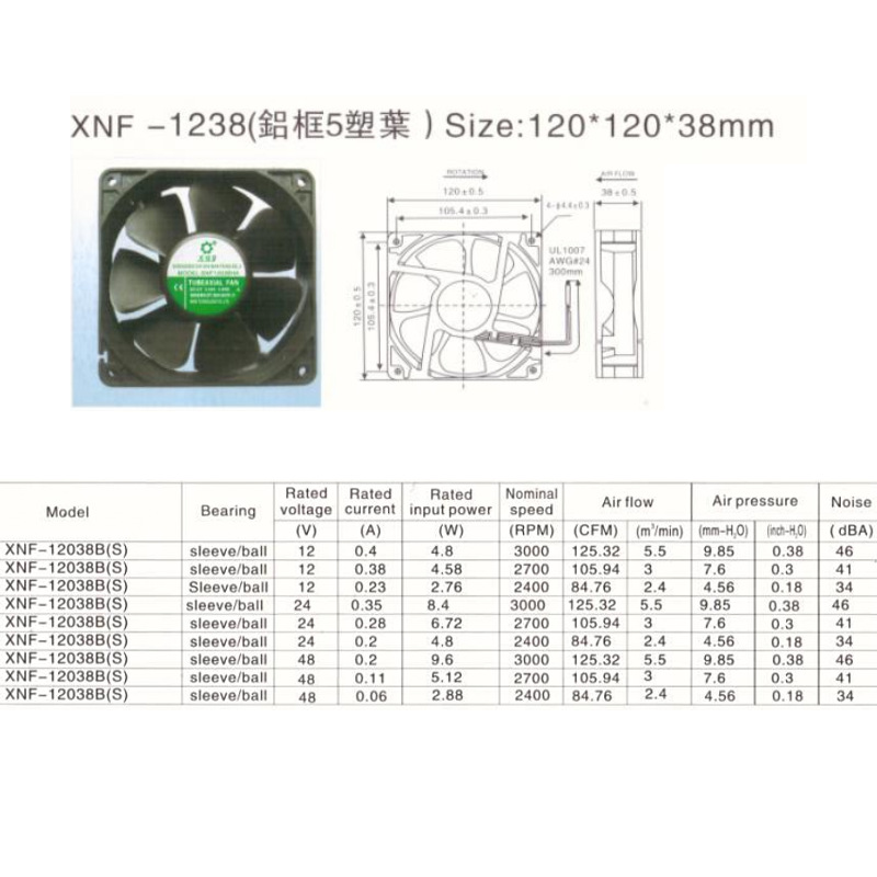 - Product Specifications: XNF-12038B(S)12v
