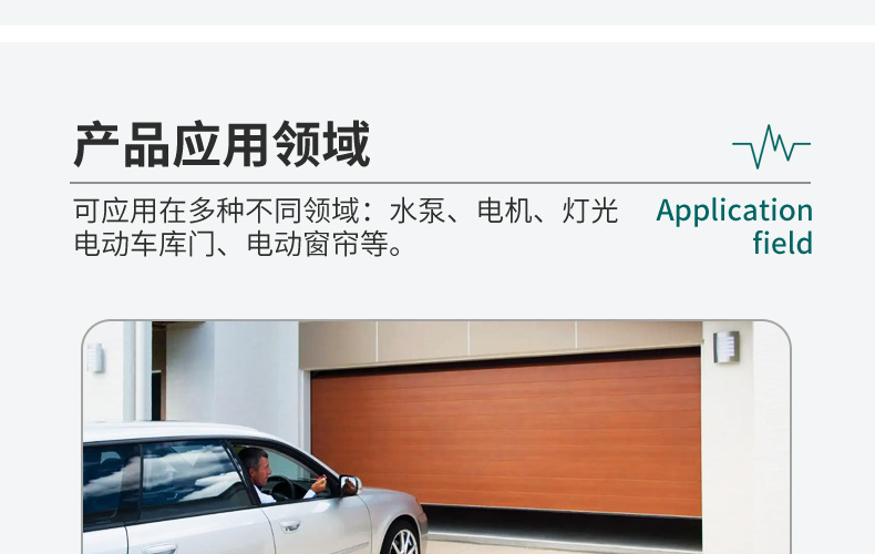 - Applicable Range: Garage door, electric door, lighting control, motor, pump, etc.
