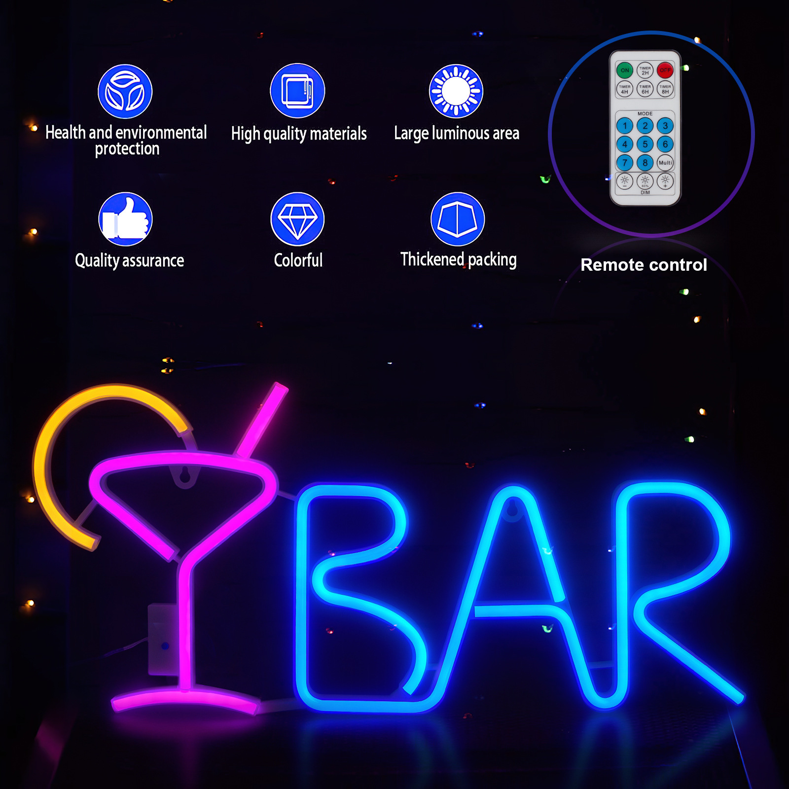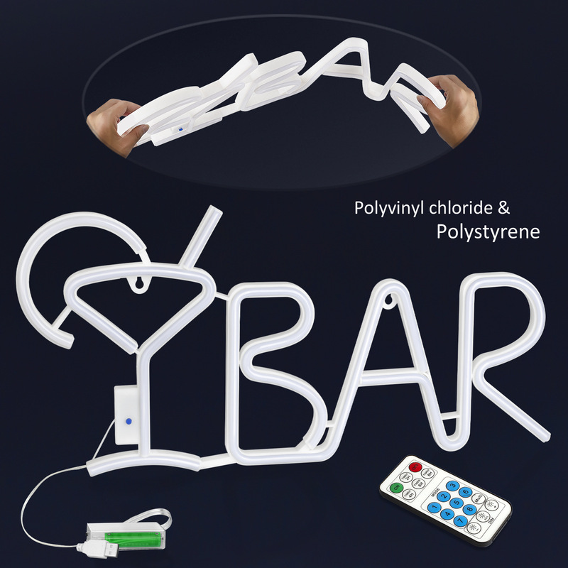 - Power: Neon light shape bar (remote control) (without accessories) Battery box + USB plug dual use