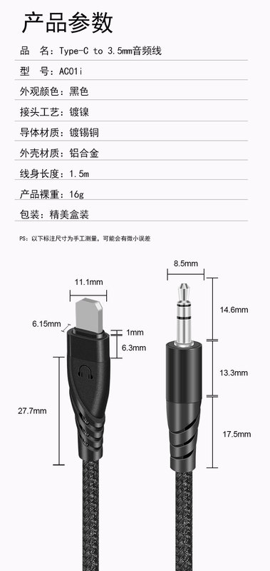 - Interface Type: Apple to 3.5mm [1m]
