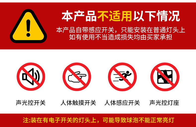 - Power: 【Diamond Series】Sound-Activated Sensor Bare Bulb 10W