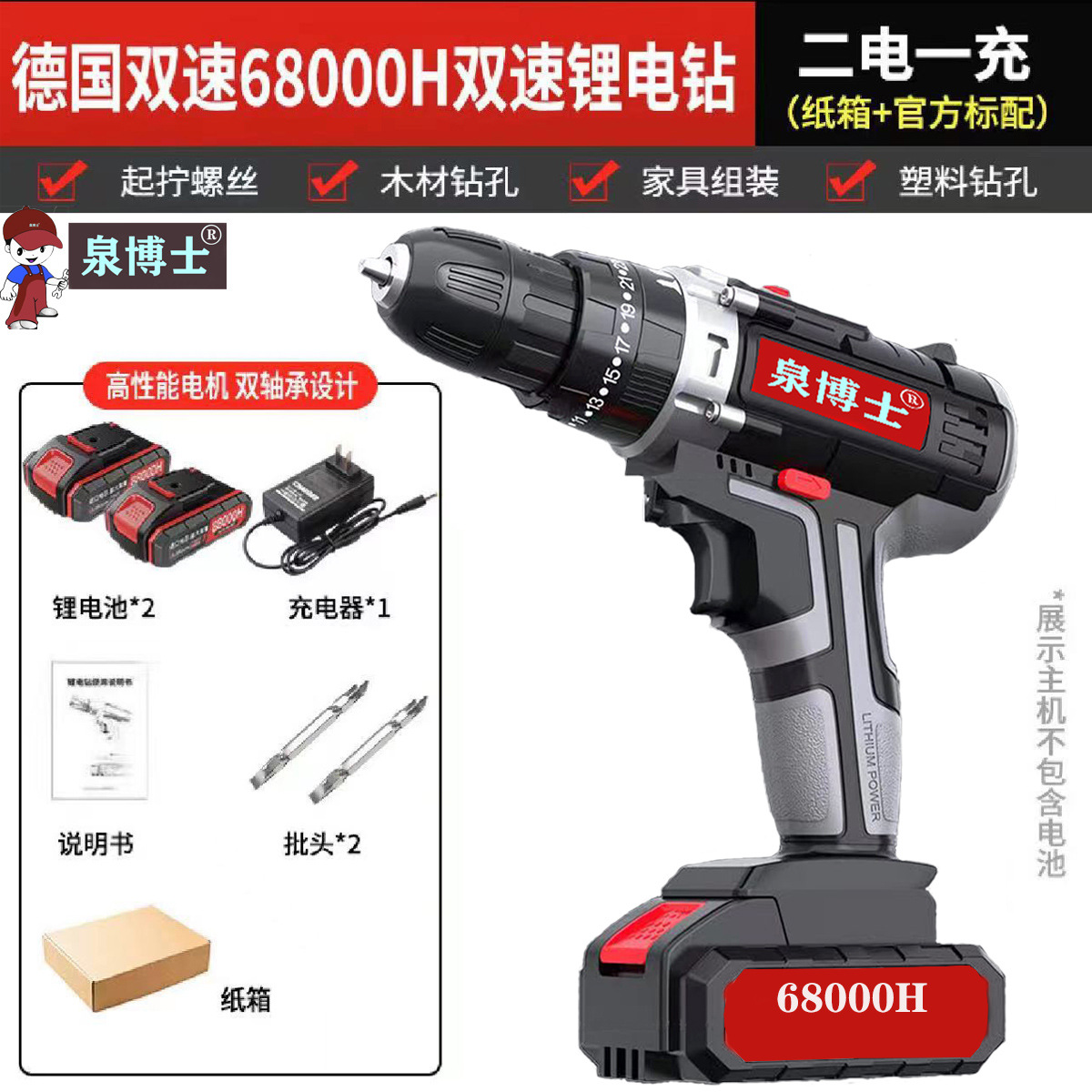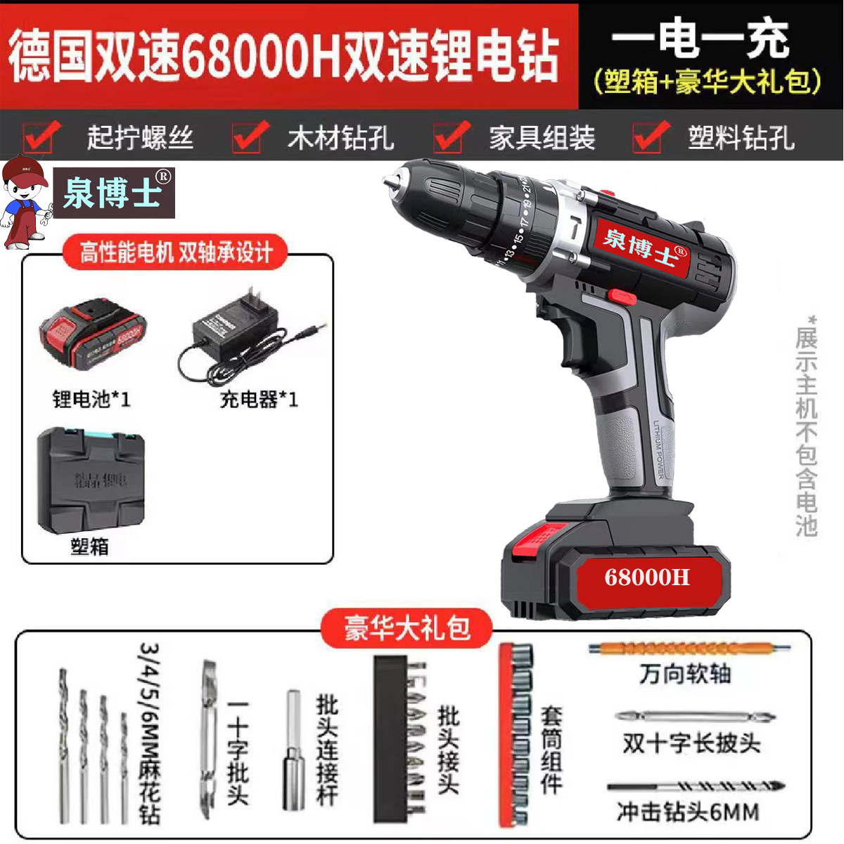 - Model: Premium 68000H Dual-Speed 1 Battery 1 Charger + Standard Set
