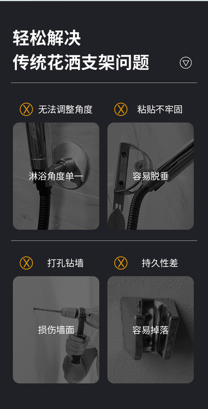 - Specification: Black Screwless Shower Holder