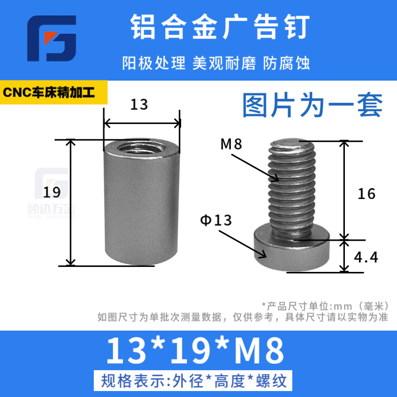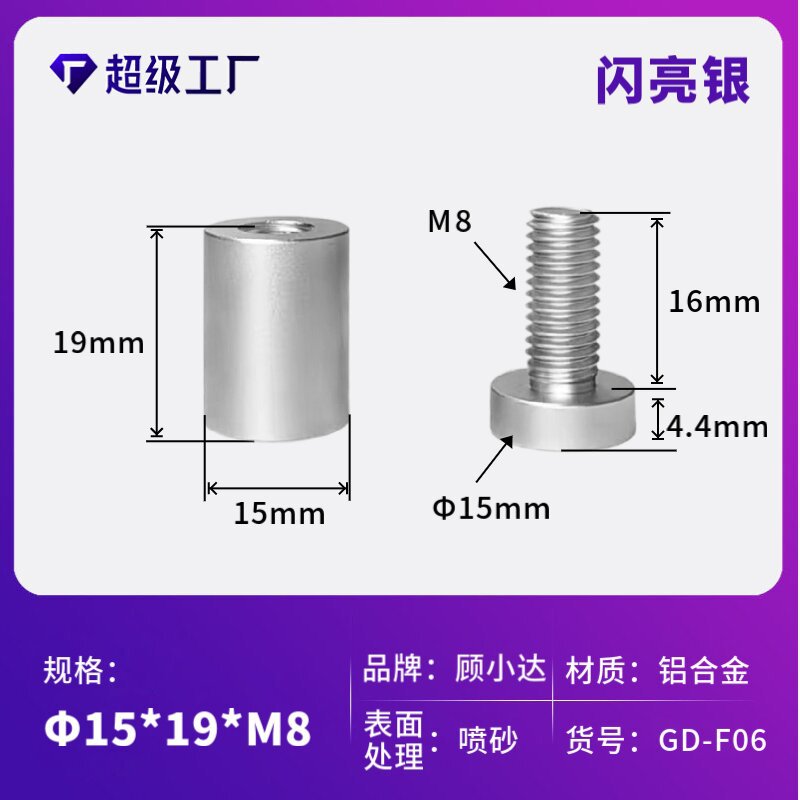 - Specification: 14*19*M8 sandblasting + shiny silver