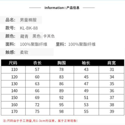 - 產品類別:童棉衣
