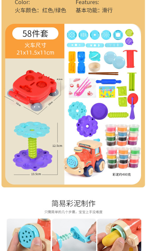 - 規格:火車麵條機34件套(含12色泥)
