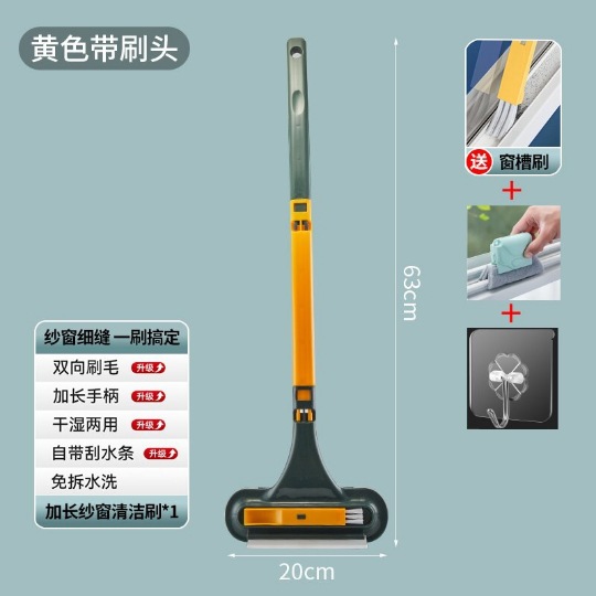 - Specification: Yellow-Green Three-in-One Window Wiper + Groove Brush + Hook