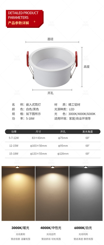 - 功率:黑色75開孔/7W