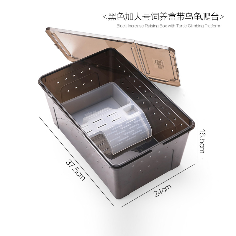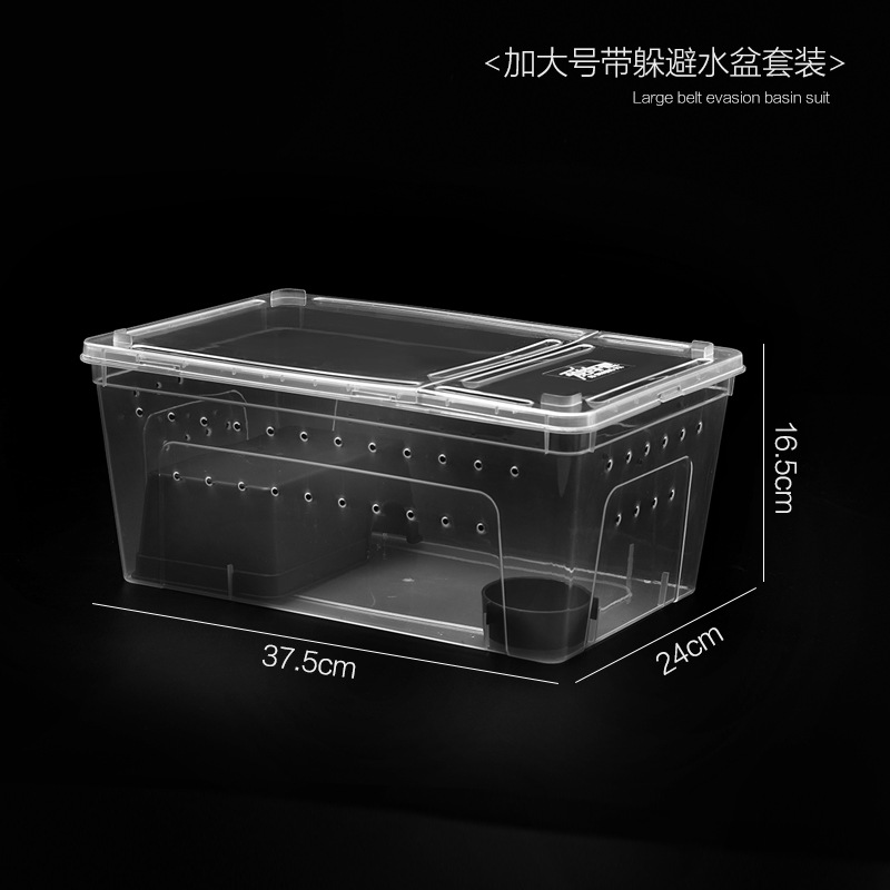 - Specification: Large-sized High Translucent Black饲养盒 with Water Bowl (40cm L x 27cm W x 20cm H)