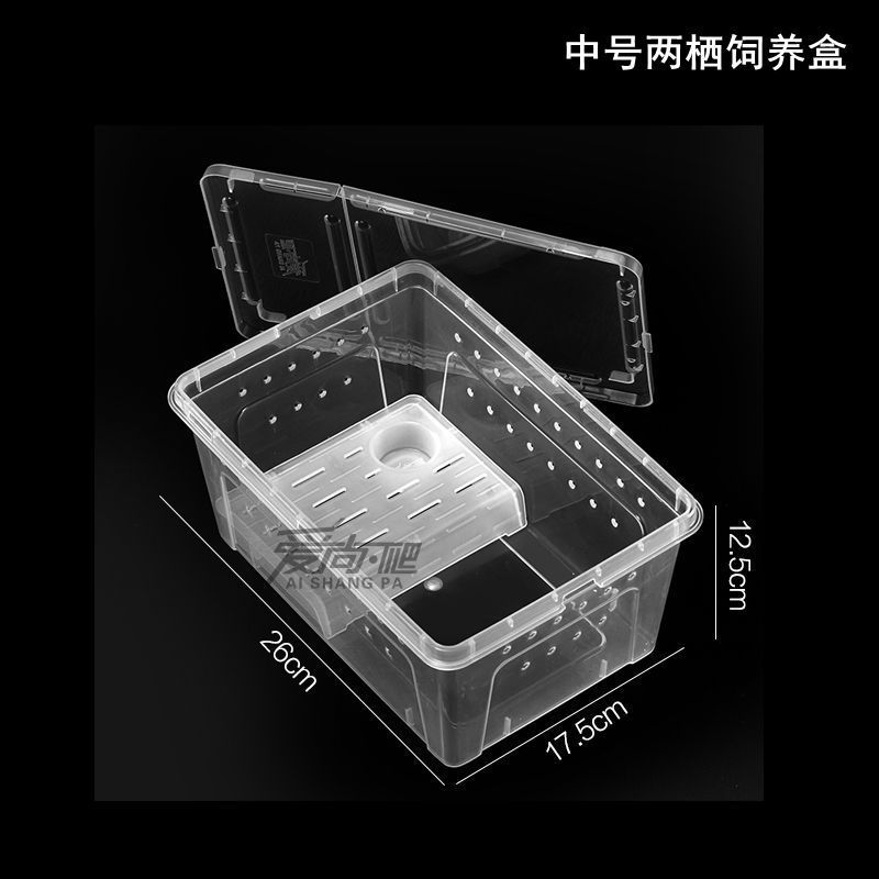 - Specification: Large-sized High Translucent饲养盒+ Two Isolation Boards with Water Bowl (40cm L x 27cm W x 20cm H)