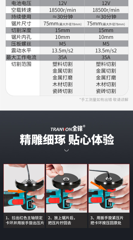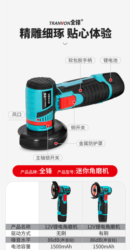- Model: 12V Brushed Angle Grinder [Two Batteries + One Charger] 76 (Paper Box Packaging)